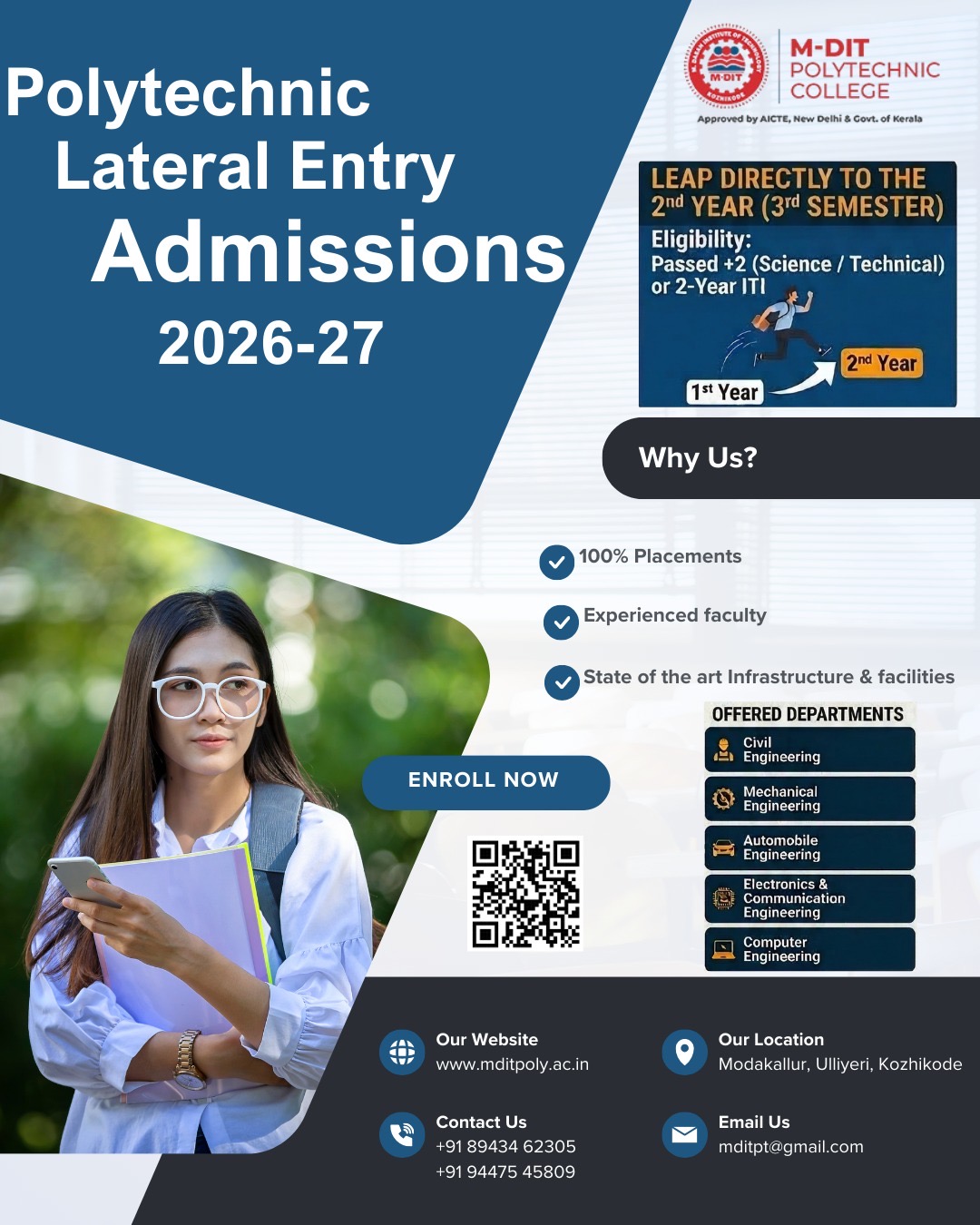 M-DIT POLYTECHNIC COLLEGE, was established and became the part of Educational Complex at Ulliyeri in Kozhikode District of Kerala during the year 2015.