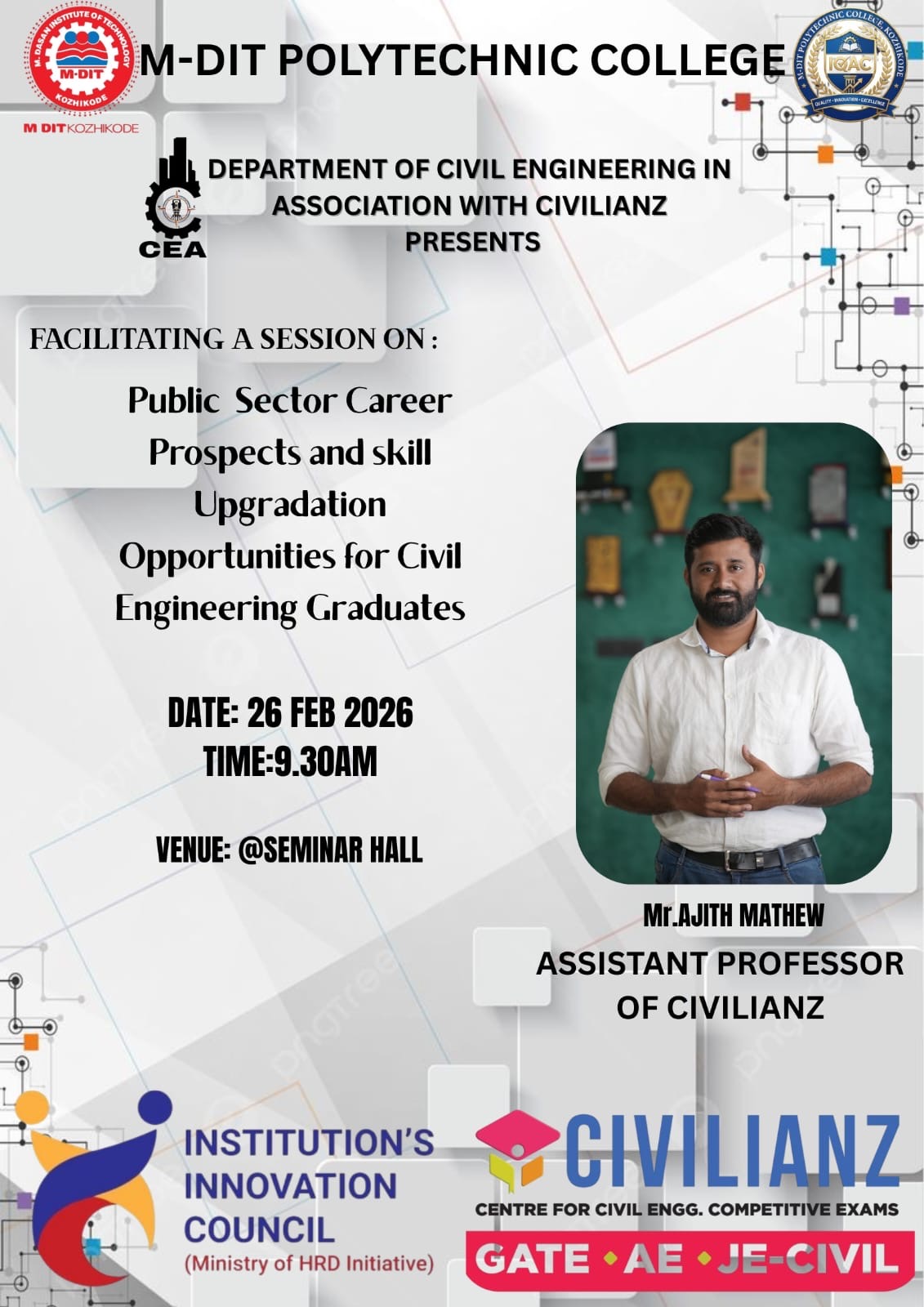 The Civil Engineering Association in a polytechnic is a student organization that helps civil students develop practical skills and technical knowledge. It organizes activities like site visits, workshops, seminars, and model-making competitions.The association aims to connect theory with real construction practices, improve technical skills, and prepare students for careers in the construction and infrastructure field.